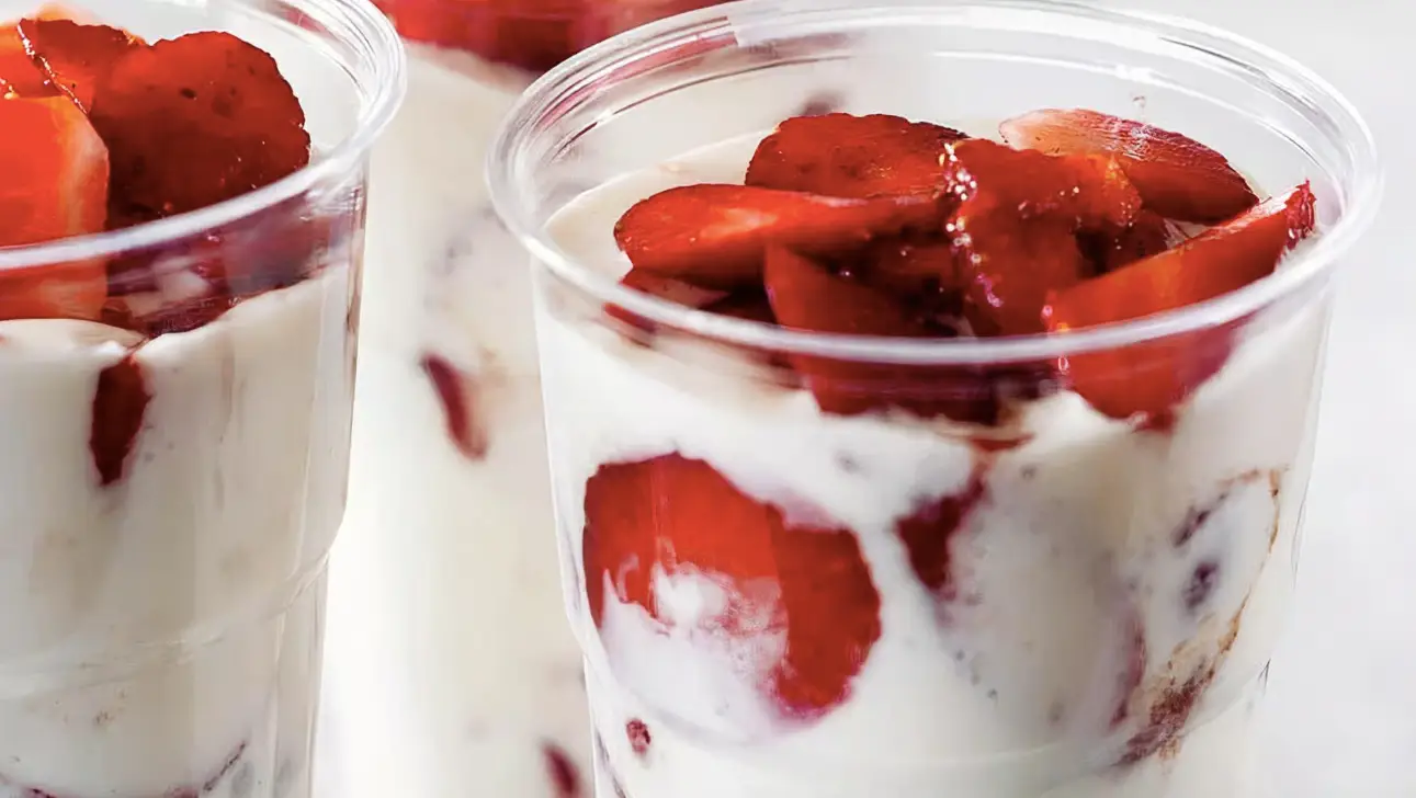 Strawberries, cream, available in small, medium, or large sizes.